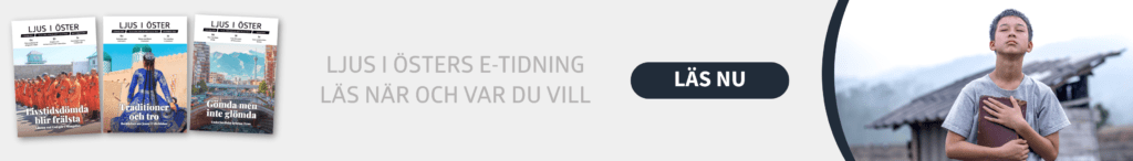 I Kina växer kyrkan, men biblarna räcker inte till. Troende samlas i hem och underjordiska kyrkor, hungriga efter Guds ord. Den här julen vill vi tillsammans med vår partner Back to Jerusalem svara på deras bön – fler biblar till Kina. Det handlar inte bara om att sprida böcker, utan att stärka lärjungar. Bibeln ger troende möjlighet att växa, undervisa och föra tron vidare i en miljö där det kan kosta friheten – eller livet – att vara öppen med sin kristna tro.
