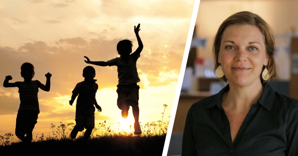 De tre små flickorna håller varandra i händerna och dansar i en ring så att deras sommarkjolar snurrar runt runt. Min dotter och hennes kusiner skrattar förtjust där på gräsmattan. Solen skiner och tillsammans gestaltar de lek, gemenskap och glädje.